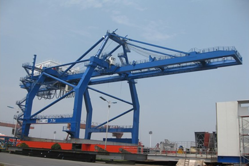 輪胎式集裝箱門式起重機(jī)方面,大連重工研制的該類產(chǎn)品適用于國際標(biāo)準(zhǔn)集裝箱的搬運(yùn)及裝卸,設(shè)備性能先進(jìn),機(jī)動性好,對地面不平度敏感性小。目前產(chǎn)品主要機(jī)型為吊具下30.5噸—45噸。